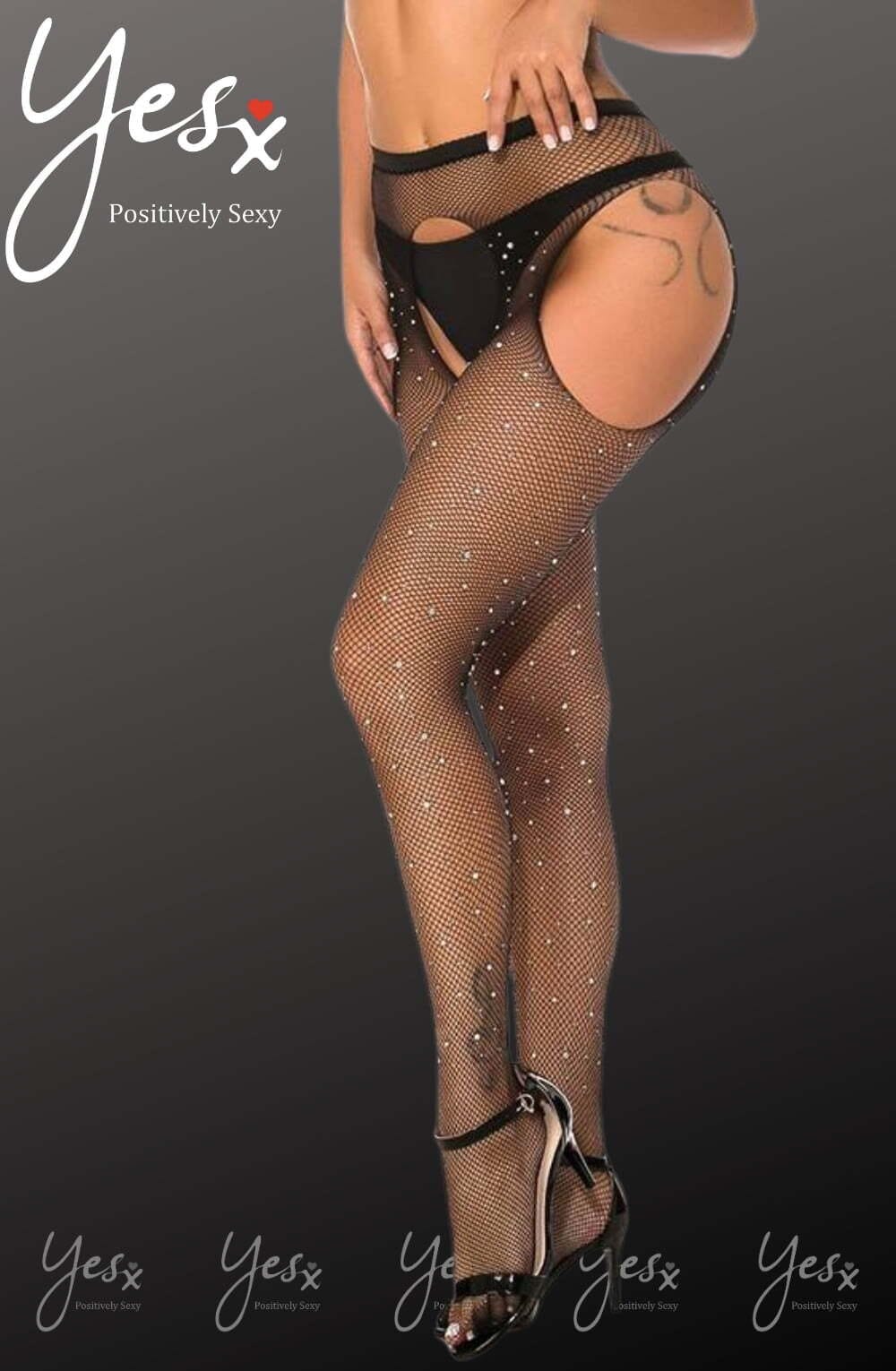 YesX YX850 Sparkly Fishnet Black