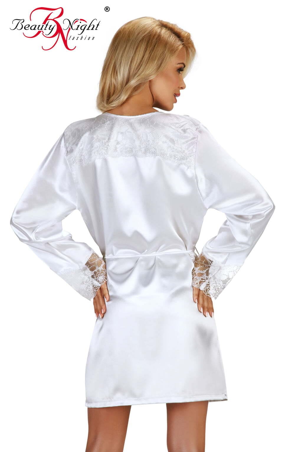 Fabienne is an elegant dressing gown decorated with stunning lace. The lace cuffs give a sophisticated look making this design really eye catching! A thong is also included. This item arrives packaged in an organza bag and Beauty Night box.
