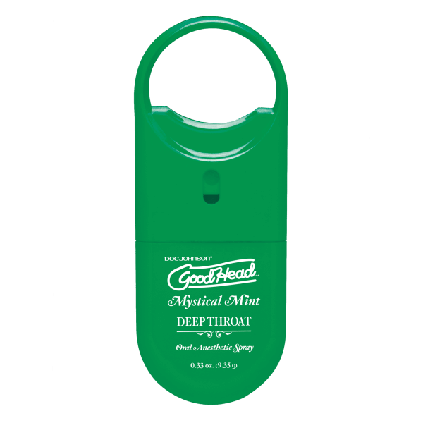 Take the job out of blow job. GoodHead Deep Throat Spray To Go offers a delicious mild numbing agent with a simple spray. No gag reflex, no discomfort, just a mind-blowing deep throat experience. This delectable desensitizing formula turns good head into great head. 0.33 ounce. Refreshing Mystical Mint flavor in a pocket sized container.