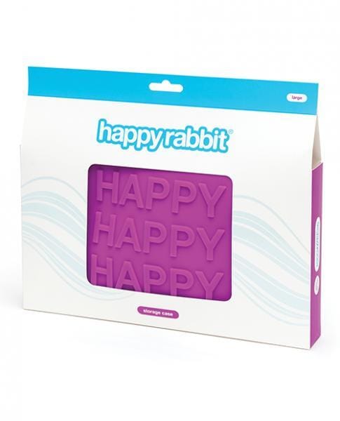 Happy Rabbit Happy Large Purple Silicone Zip Storage Bag from Love Honey. This silicone storage case says it all, quite literally. Designed to keep your Happy Rabbit happy happy happy, it is wipe clean, has a zipper closure and, if you pick up a padlock, it is lockable for complete privacy. What are you waiting for? Hop to it! The best of both worlds, this silicone pouch is somewhere between a soft bag and a hard case. It holds its shape, making it super discreet should anyone take a peep in your toy drawer, but is squishable for squeezing into your overnight bag or suitcase. Case dimension 10 inches in length by 7 inches in height by 1.75 inches in depth. Perfect for the following Happy Rabbit toys plus your charger and a bottle of lube. Happy Rabbit Curve Rabbit Vibrator. Happy Rabbit G-Spot Rabbit Vibrator. Happy Rabbit Realistic Rabbit Vibrator. Happy Rabbit Triple Curve Rabbit Vibrator. Key features: large silicone storage bag with zipper closure for keeping your toys in tip top condition. Wipe clean silicone for hygienic storage. Discreet design looks like a makeup bag or bikini pouch. Lockable zippers for total privacy, just pick up a padlock. Plenty of room for a small toy and your favorite lubricant.