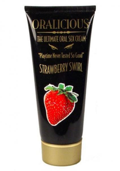 Oralicious (2oz Strawberry) Oralicious oral sex cream brings a whole new level of excitement when it comes to intimate play! This amazing cream not only numbs and tickles the throat, but also has a smooth and cooling rich taste and aroma. It provides both partners a euphoric experience that will leave you both hungry for more! Massage it in, lick it off and feel your erogenous zones come alive!Ingredients: Water, Mineral Oil, Isopropyl Palmitate, Glycerin, Sesame Seed Oil, Cetearyl Alcohol, Flavoring, Cetearyl Glucoside, Caprylic/Capric Triglyceride, Hybrid Sunflower Oil, Glyceryl Stearate, Shea Butter Extract, PEG-100 Stearate, Sodium Saccharin, Sodium Benzoate, Potassium Sorbate, Titanium Dioxide, Tetrasodium EDTA, Menthol, Xantham Gum, Propylparben, Methylparaben, Citric Acid, Colorings. 2 ounces non-graphic tube. Oralicious Strawberry Swirl from Hott Products Unlimited.