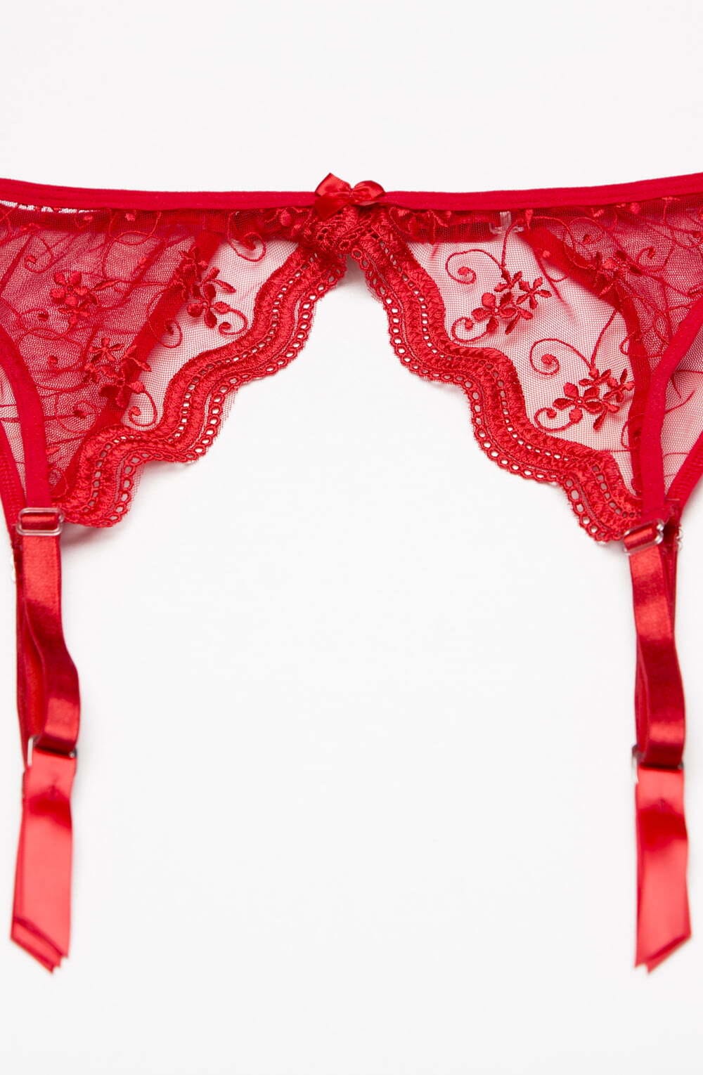 Beautifully embroidered scalloped garterbelt with adjustable back and garter straps. Available in black red pink purple & white. Also available in plus sizes.