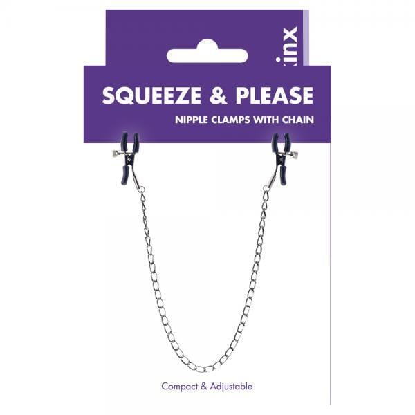 Squeeze n Please Nipple Chain. These nipple clamps are 100% adjustable, soft coated and non-nickel. You decide the pressure, you decide the pleasure.