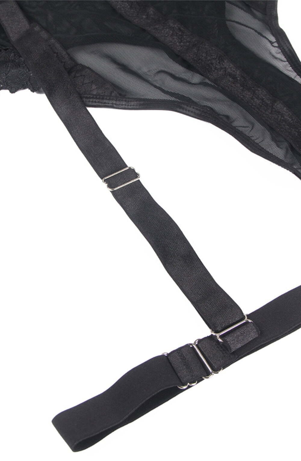 Stunning body suit with elegant lace detailing and adjustable suspender and leg straps. Adjustable popper fastening. Make this gorgeous bodysuit your perfect evening look by pairing it with either your favourite jeans or hold ups.