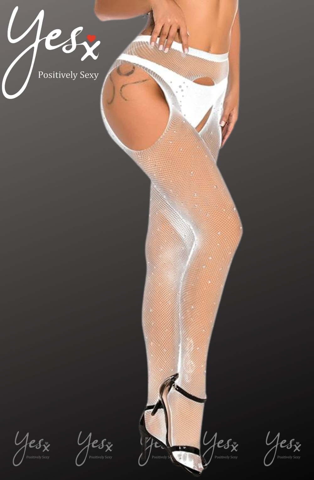 YesX YX851 Sparkly Fishnet White
