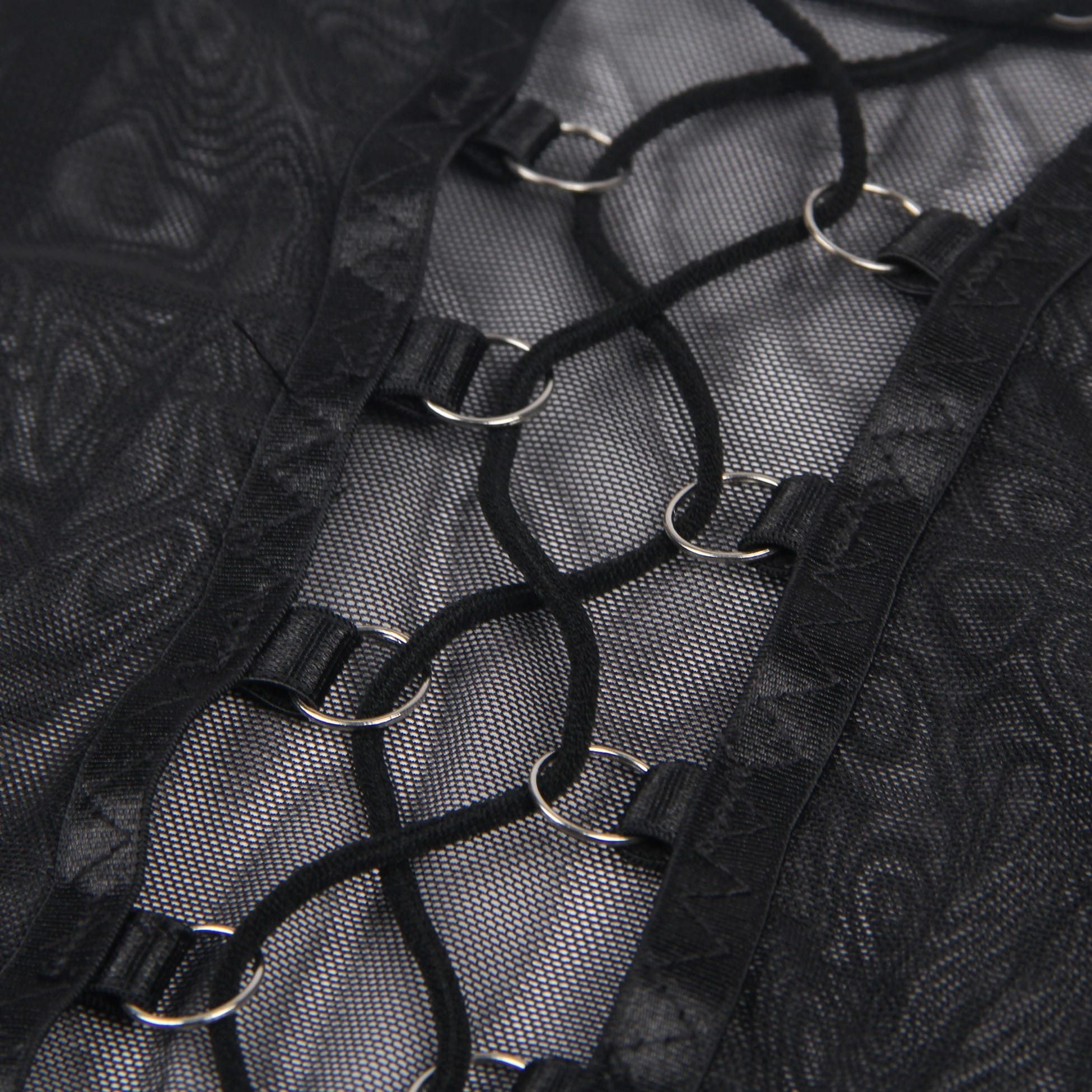 Designed to embrace and flatter all curves, this plus-size three-piece set is the perfect blend of elegance and allure. The black mesh bra features soft, breathable fabric providing a comfortable yet seductive fit. The matching garter belt is designed with a lace-up back for an adjustable, personalised fit, while the thong completes the look. To add a daring touch, the set includes leg rings that elevate the ensemble, offering a bold, confident style for those who love to feel both sexy and sophisticated.